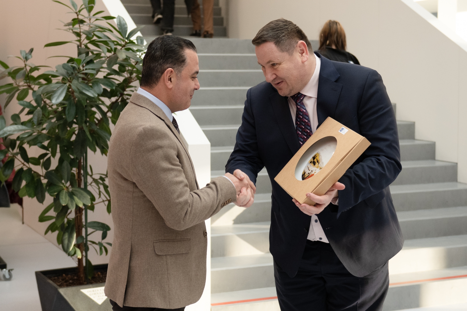 Egils Helmanis pasniedz Hosamam Abu Meri suvenīru - porcelāna šķīvi