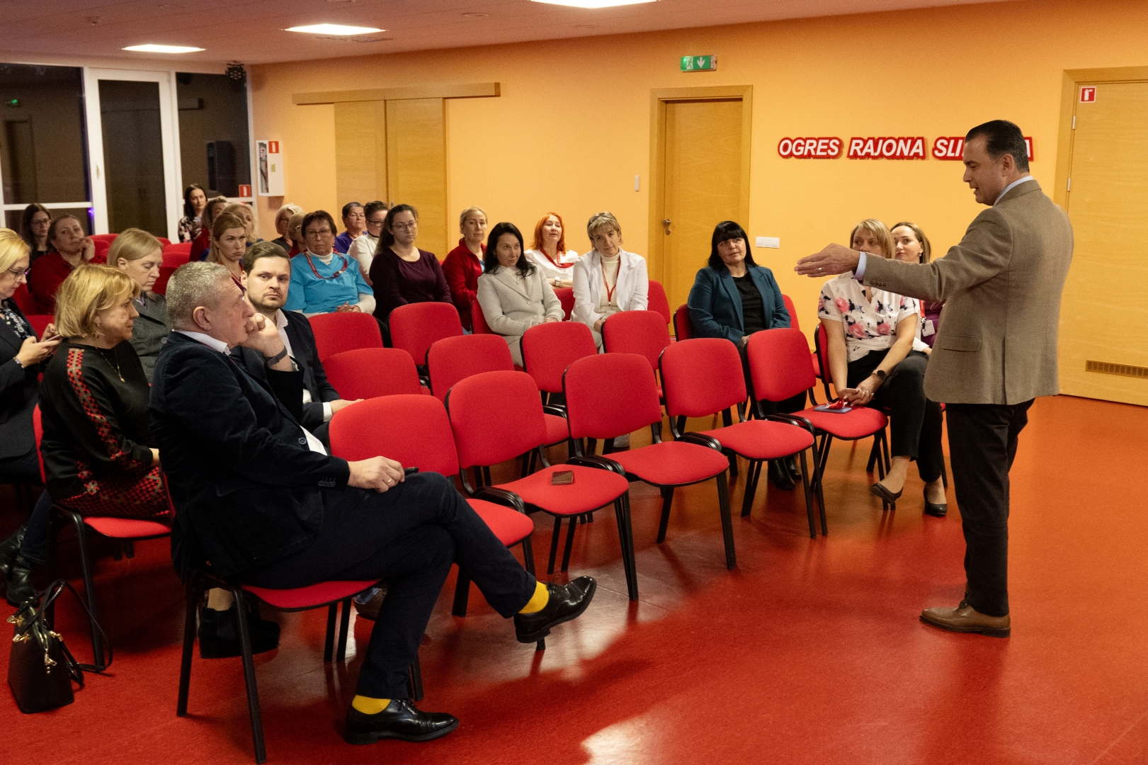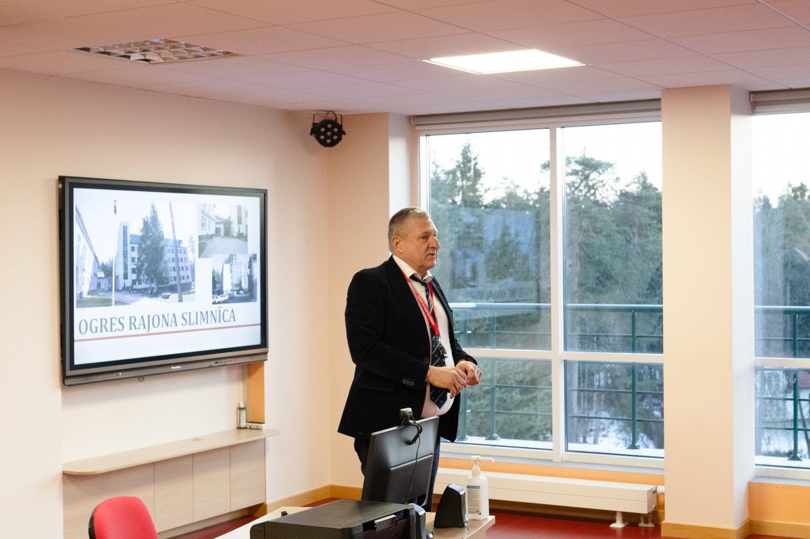 Slimnīcas vadītājs Dainis Širovs sniedz prezentāciju par slimnīcu