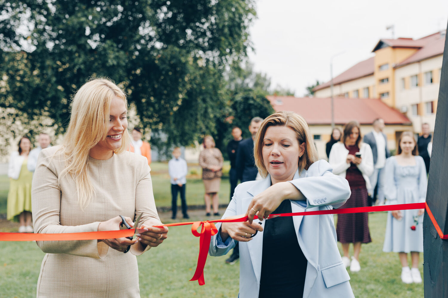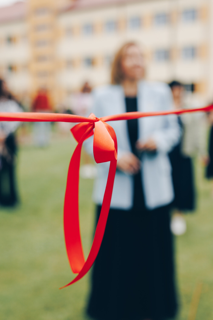 Ķeguma pamatskolā atklāta “zaļā klase” – jauna āra telpa skolēniem un kopienai. Lentīte pirms pārgriešanas