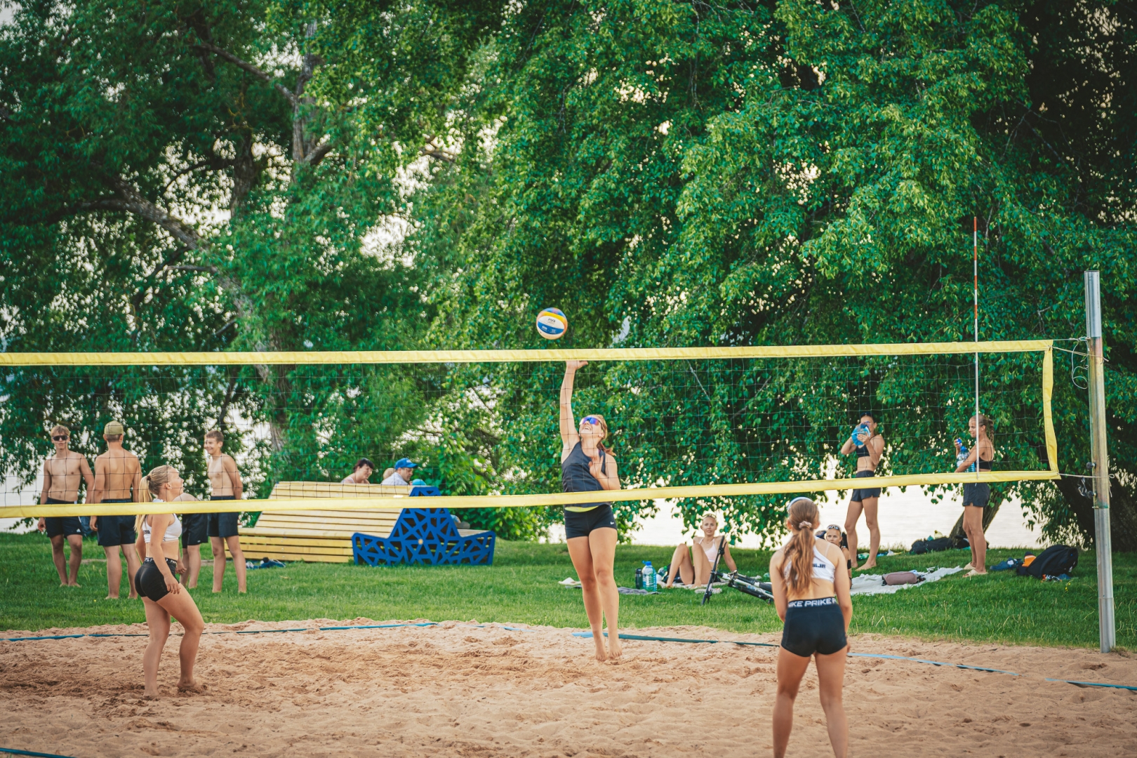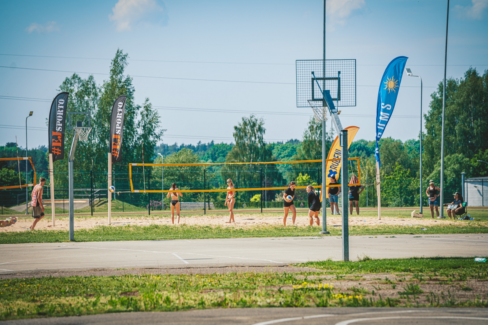Cilvēki spēlē pludmales volejbolu  Ķegumā 25.05.2024.