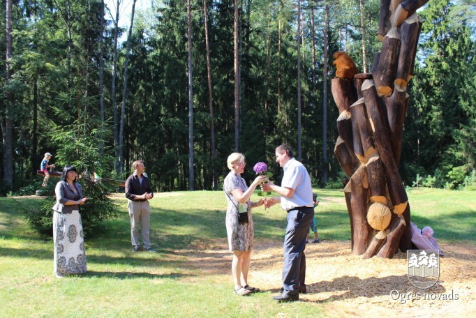 Koka skulptūru atklāšana Ogres Zilajos kalnos