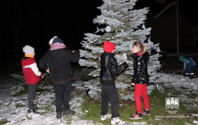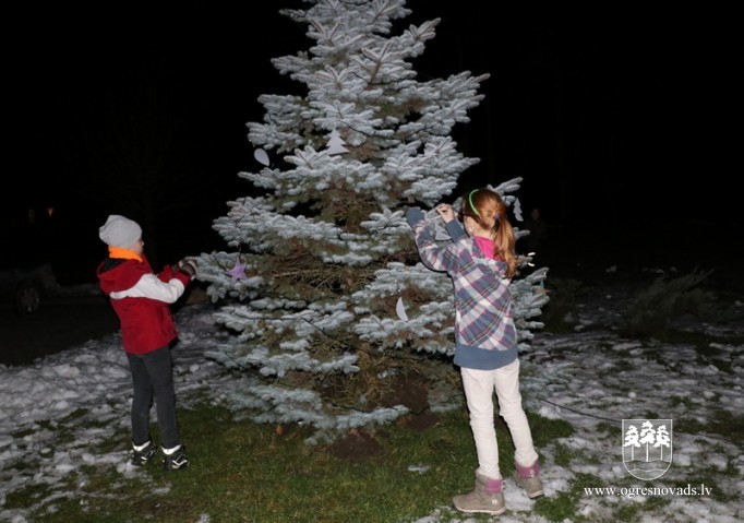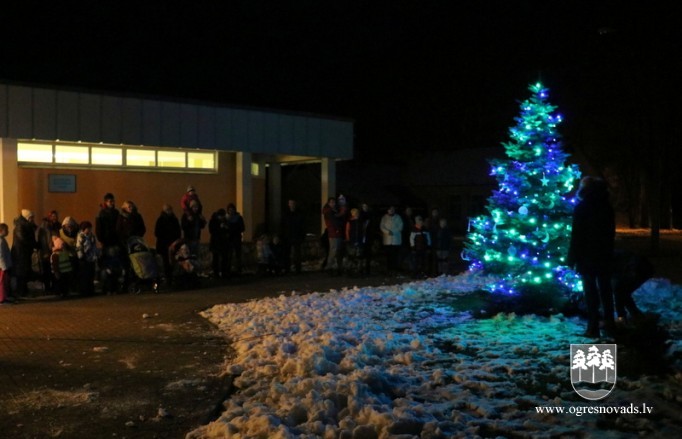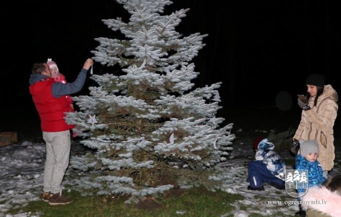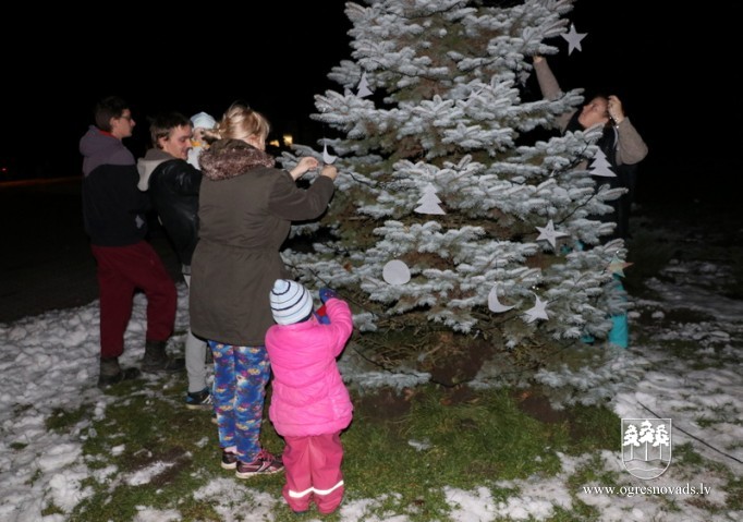 Lauberē šogad pirmo reizi iedegta svētku egle