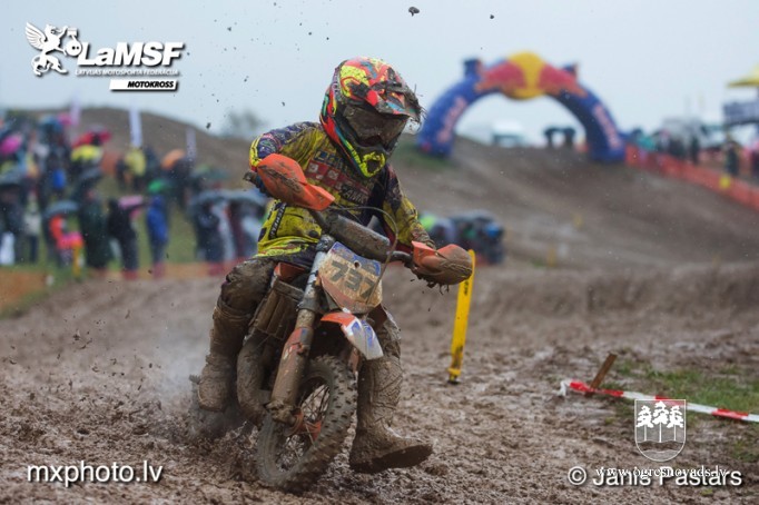 Motokrosa braucējs Gaļcins pārliecinoši uzvar Aizputē