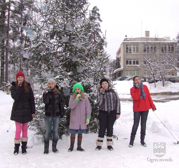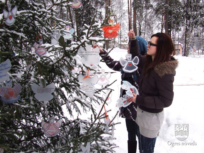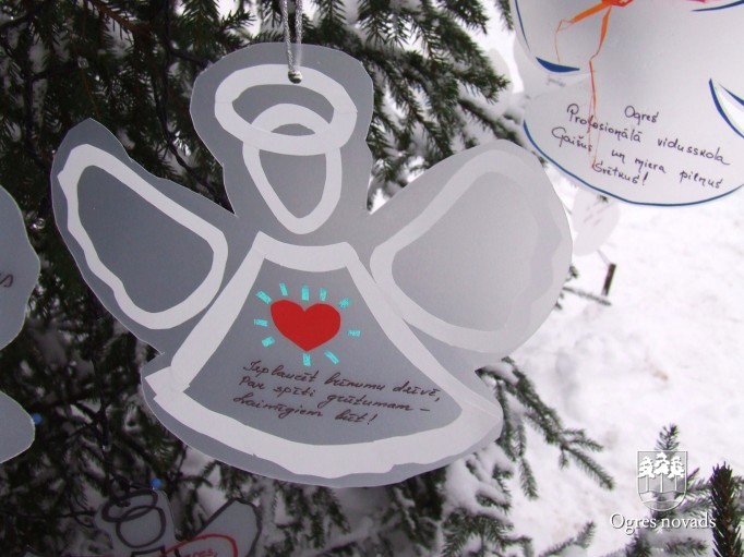 15. decembrī Ogrē pie Ogres mūzika skolas tika iedegta bērnu zīmētu un veidotu eņģeļu rotāta eglīte.