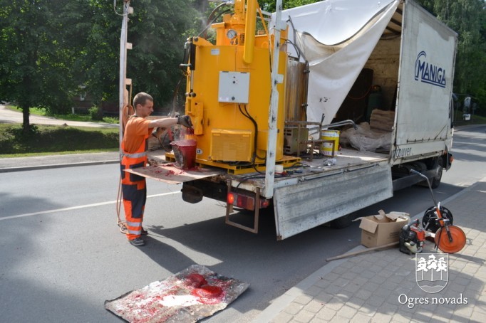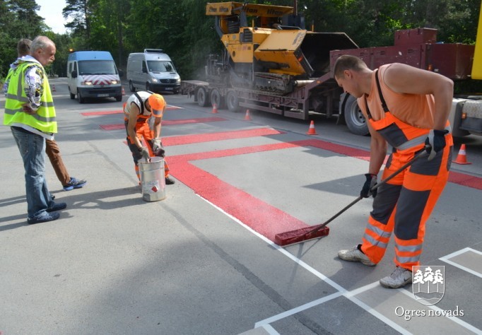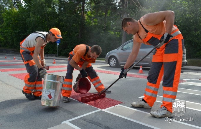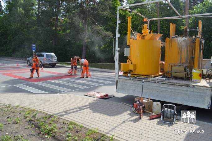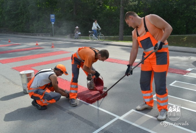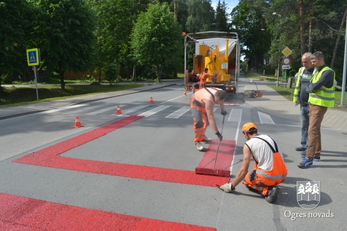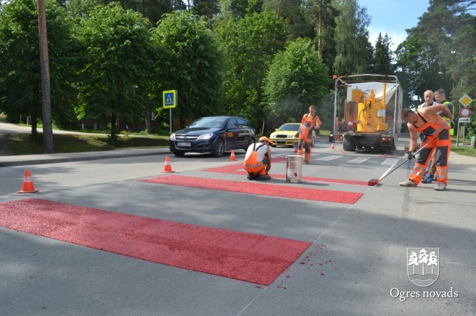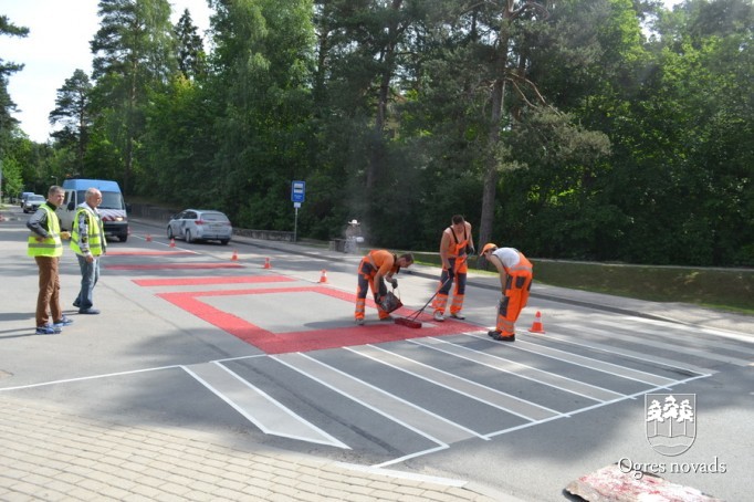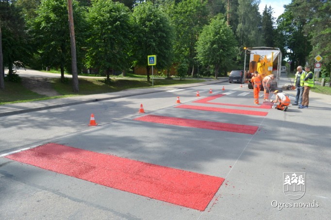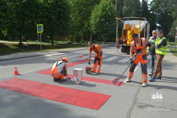 Ogrē tiek īstenots Latvijā pirmais projekts - gājēju pārejas apstrāde ar īpašu materiālu