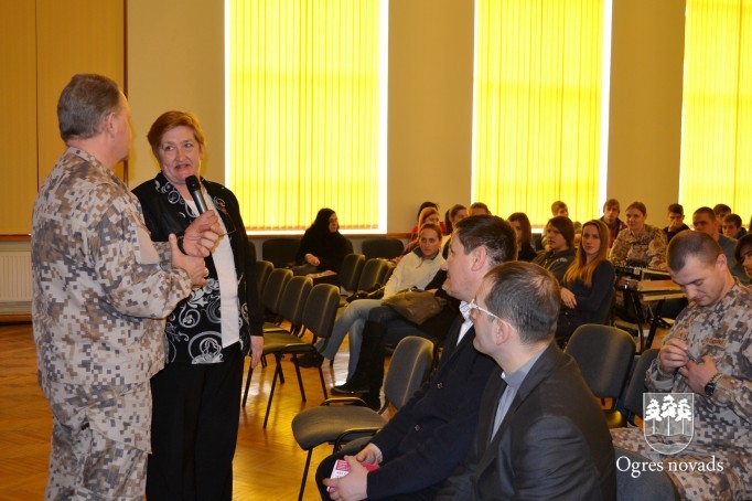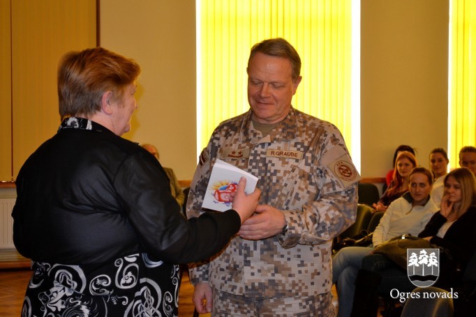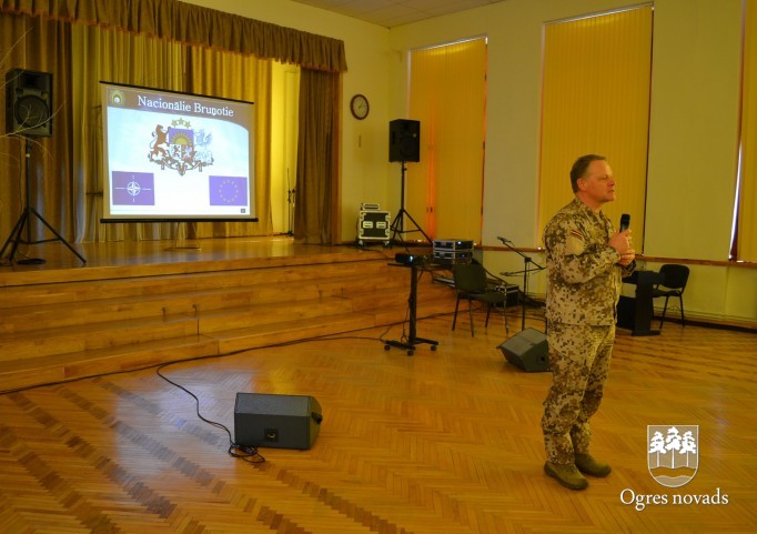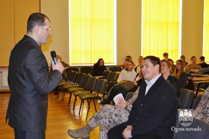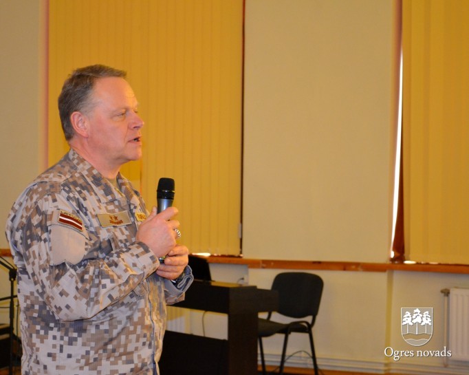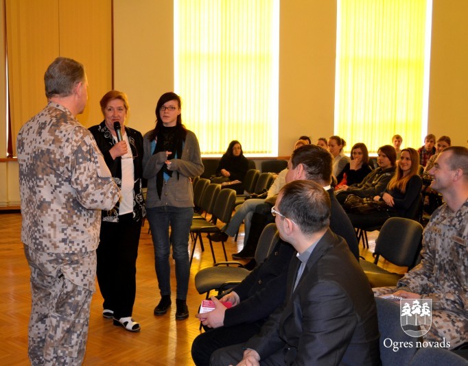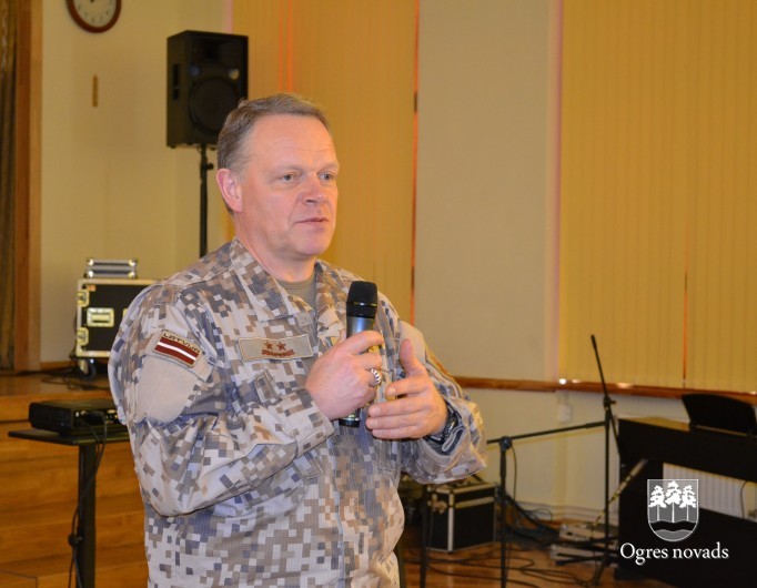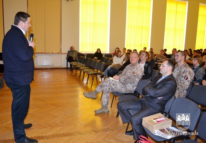 Piektdien, 17. februārī, Ogres 1. vidusskolas skolēnus un skolotājus uzrunāja Nacionālo bruņoto spēku (NBS) komandieris, ģenerālmajors Raimonds Graube, kurš pateicās par skolas sadarbību un atbalstu Latvijas karavīriem.