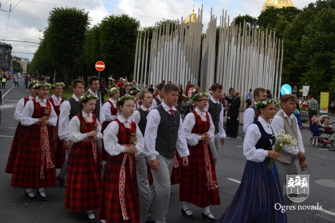 Ogres novada dziedātāji un dejotāji piedalījās svētku gājienā