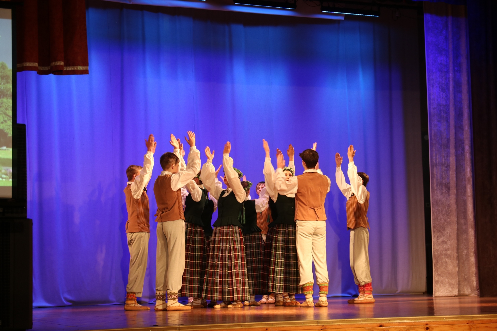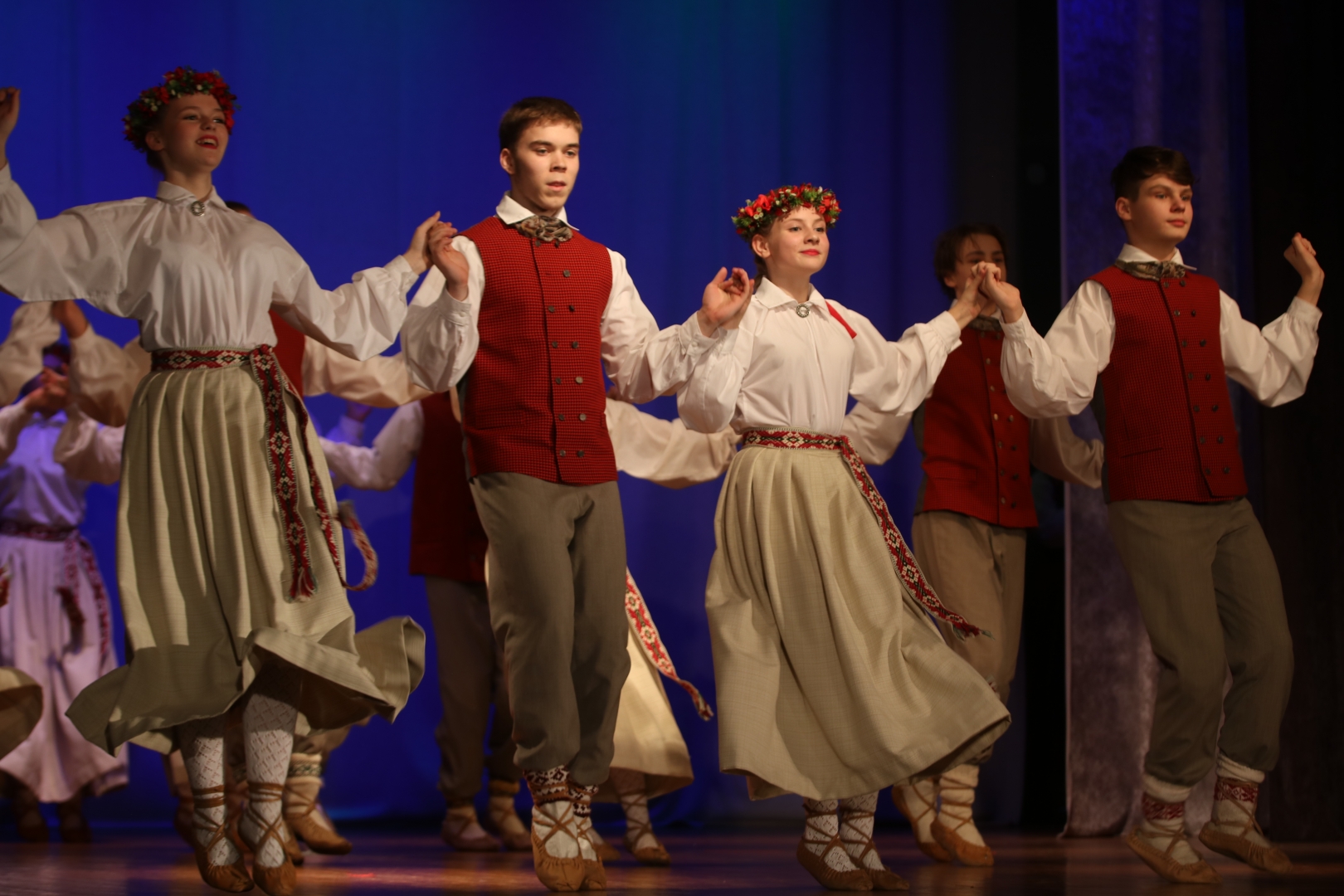 Jaunieši Ogres novada izglītības un kultūras iestāžu bērnu un jauniešu tautas deju kolektīvi radošā pasākumā “Spēlēju un dancoju” Suntažos