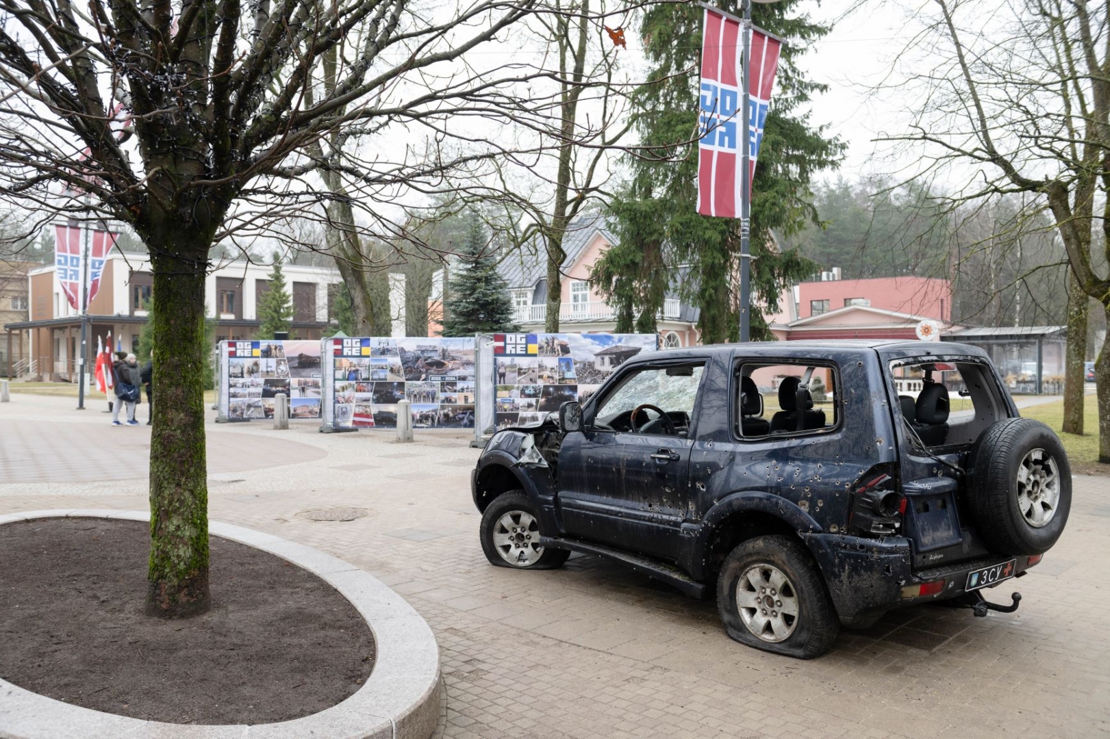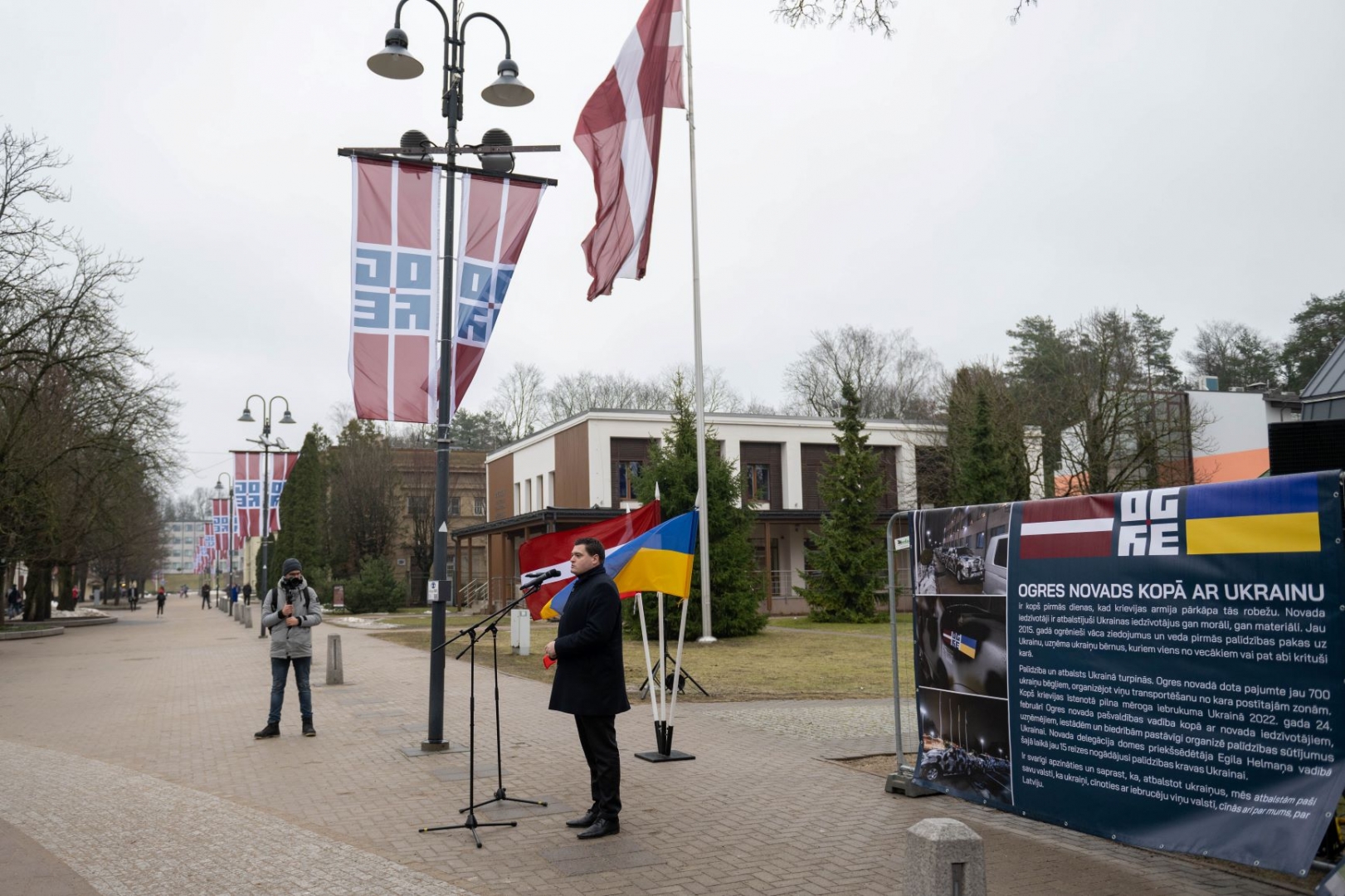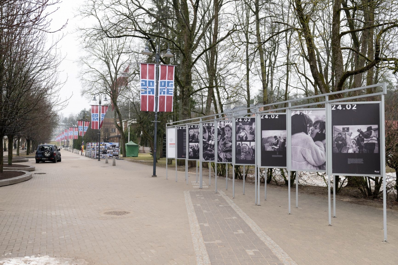 Ogres pilsētas centrā atklātas Ukrainai veltītas fotoizstādes 24.02.2024.