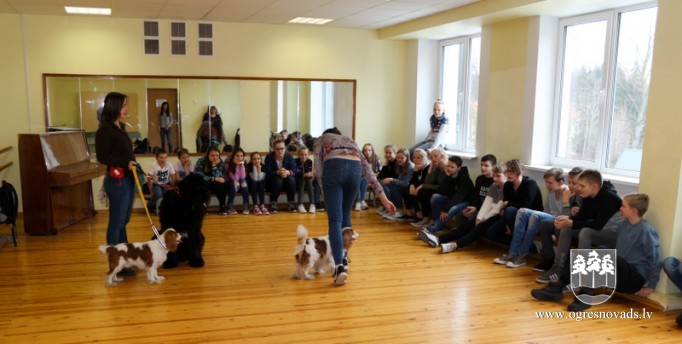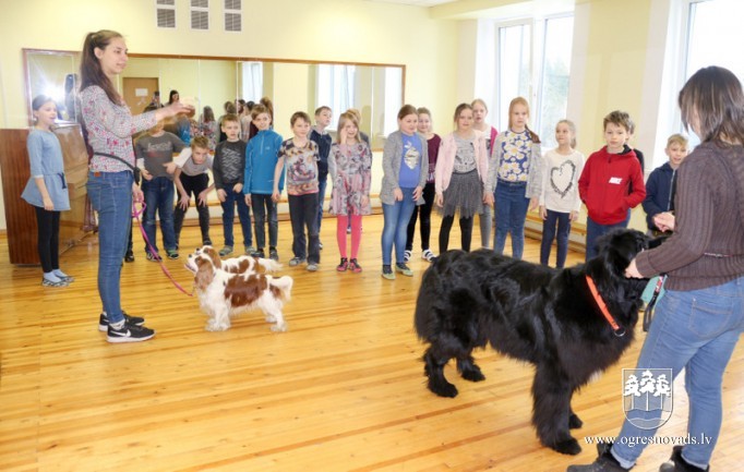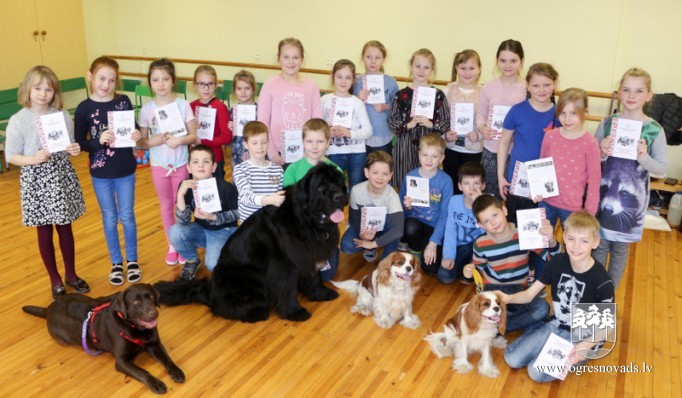 Ogres sākumskolā skolēni mācās, kā pareizi uzvesties kopā ar suni