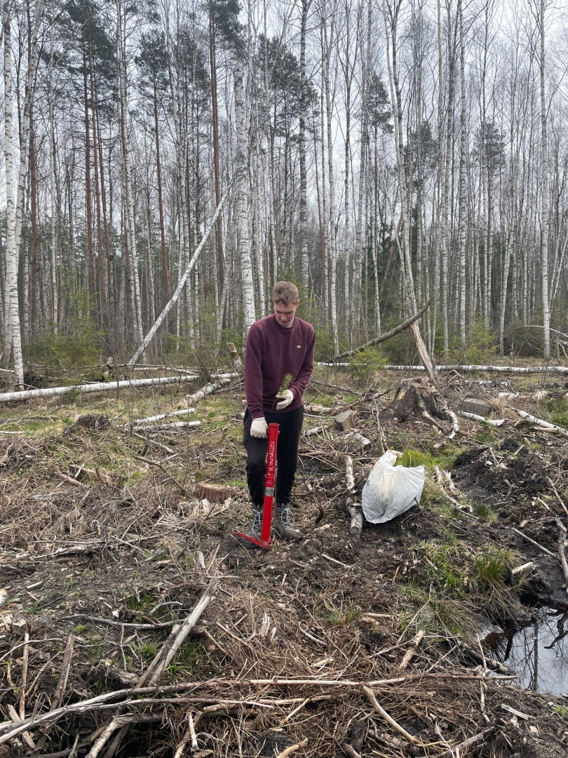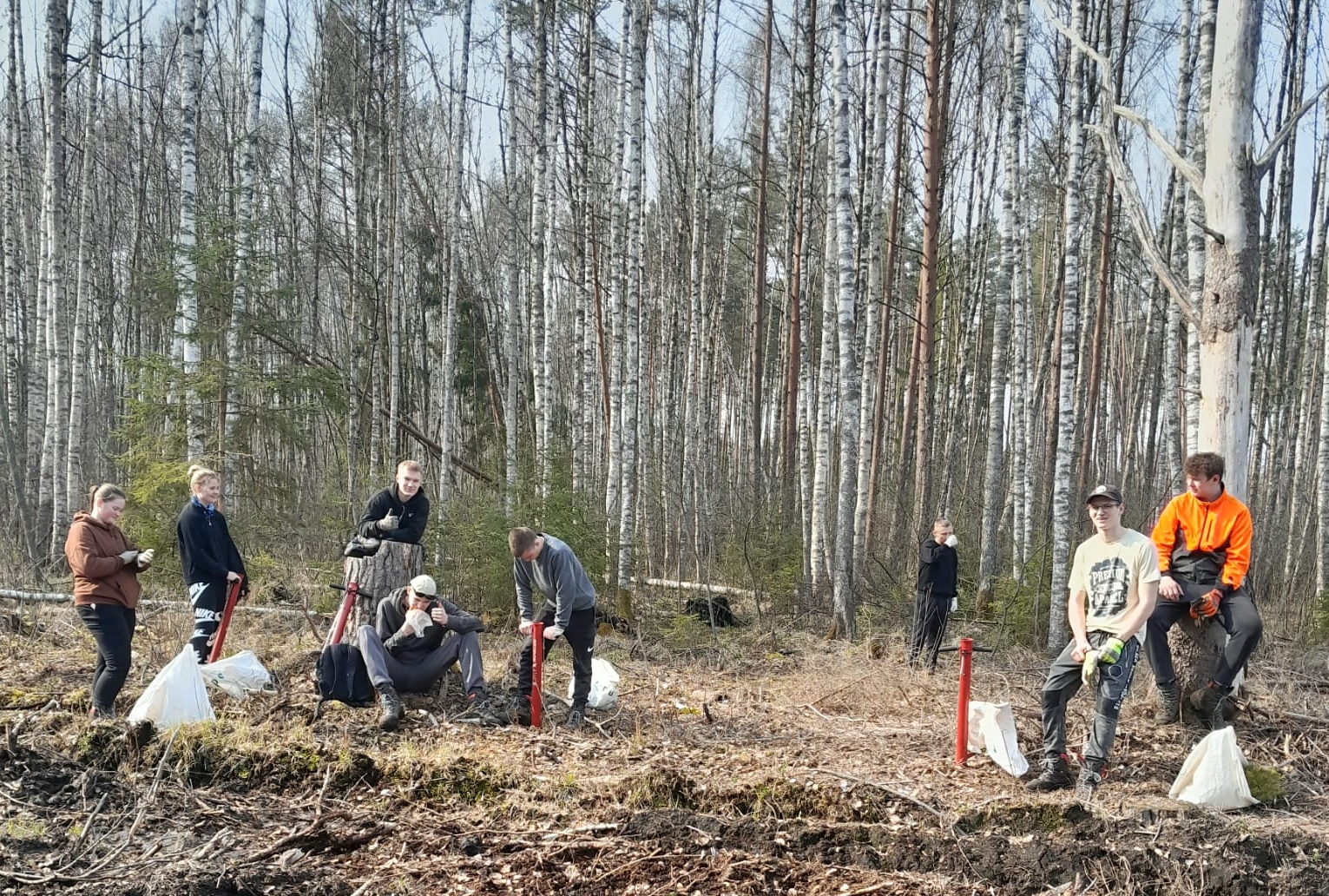 Ogres tehnikuma audzēkņi atjauno mežu Tomes pagastā