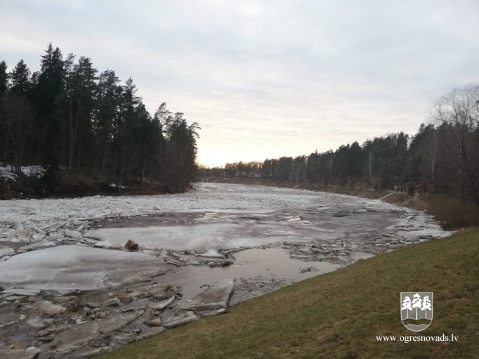 Ogres upē turpinās ledus iešana