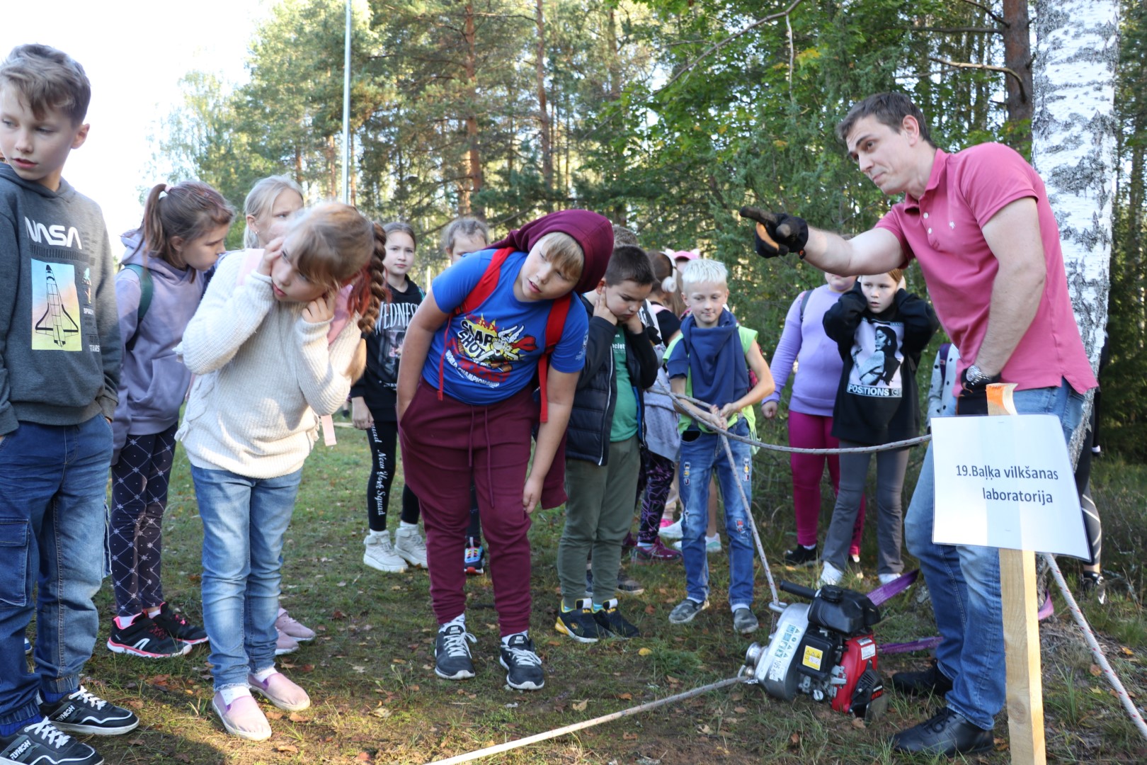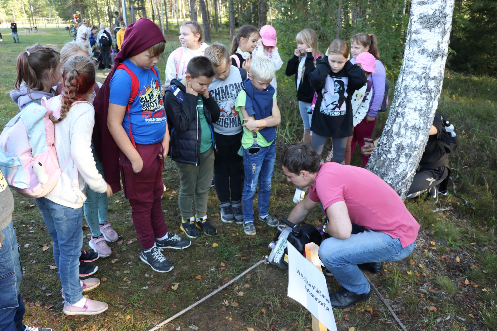 Ogres Zilajos kalnos Meža zinību dienā skolēni apgūst Meža ābeci