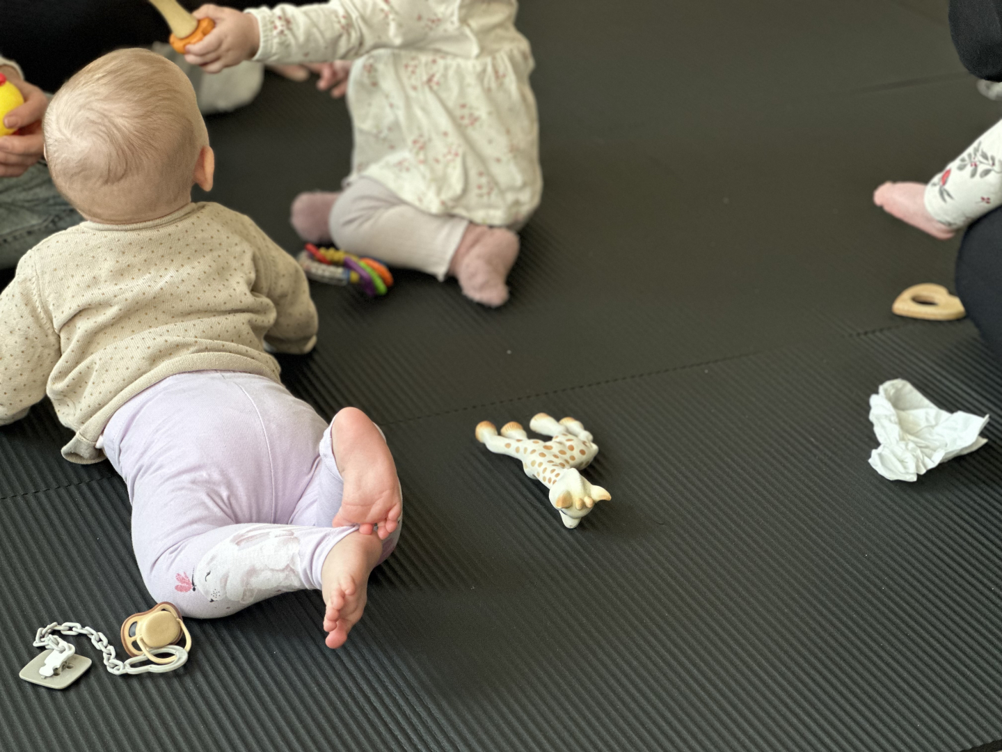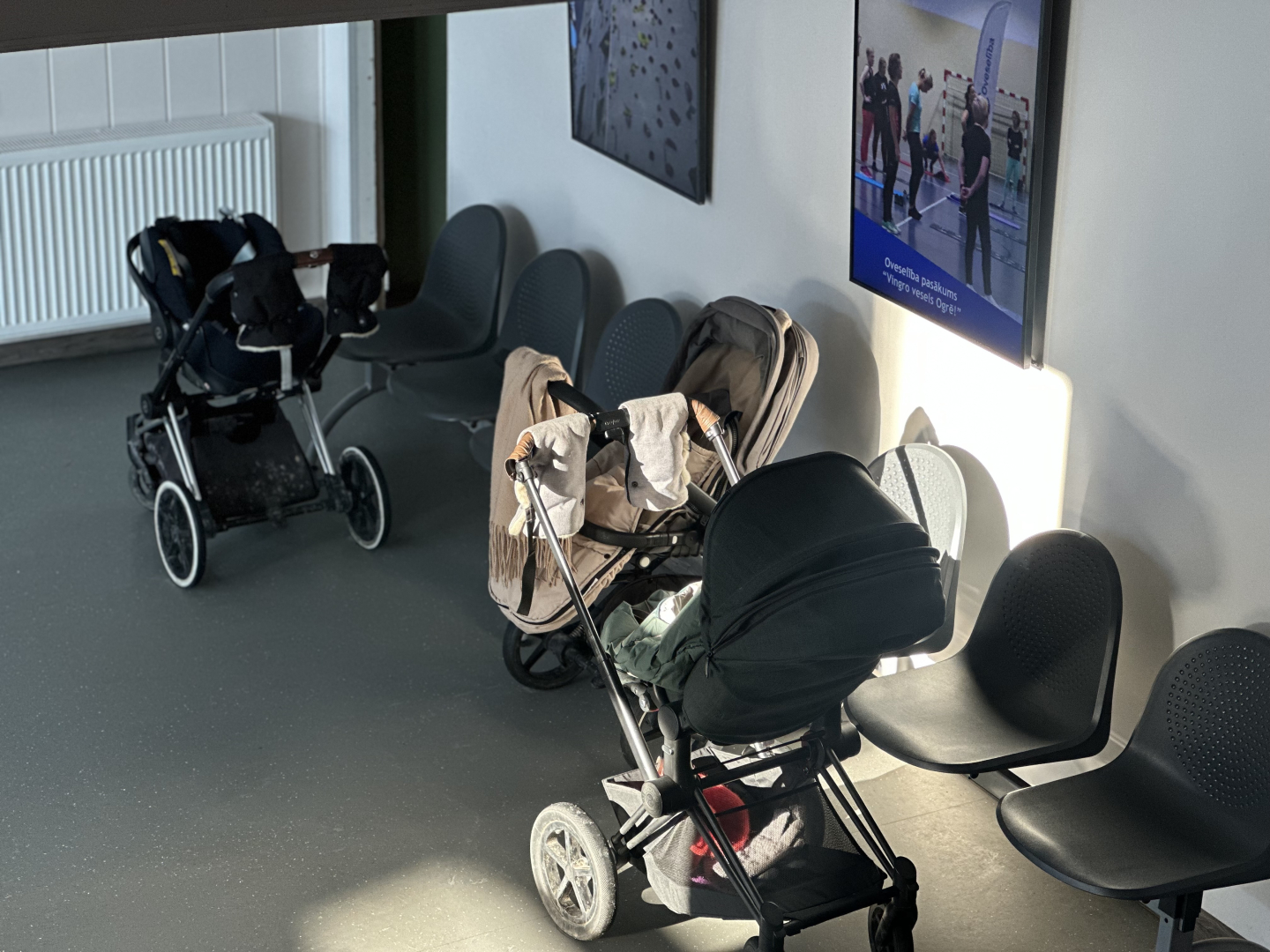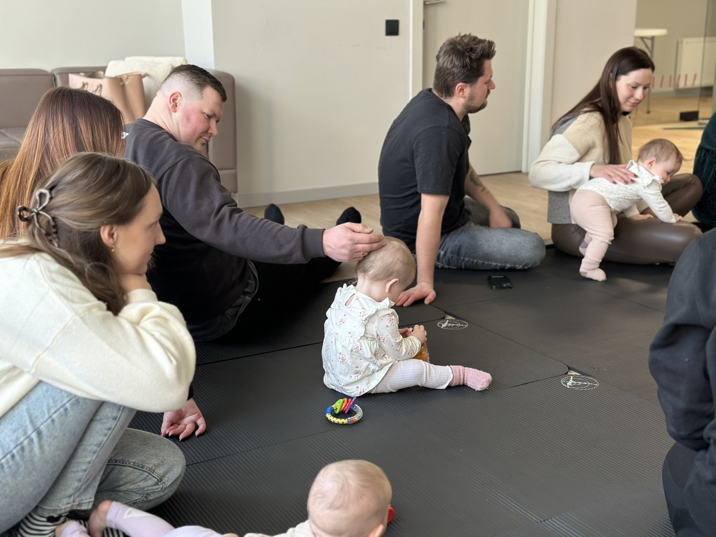 Oveselība telpās aizvadīta izzinoša un praktiska nodarbība vecākiem par sīkās motorikas attīstību mazuļa pirmajā dzīves gadā