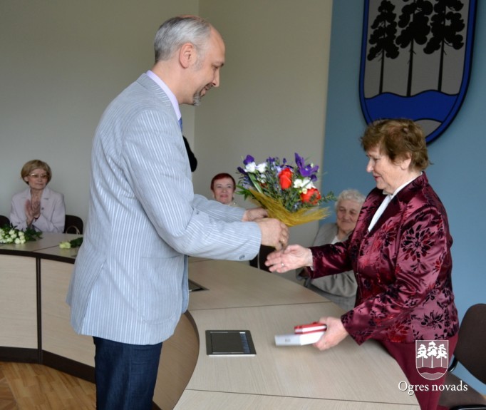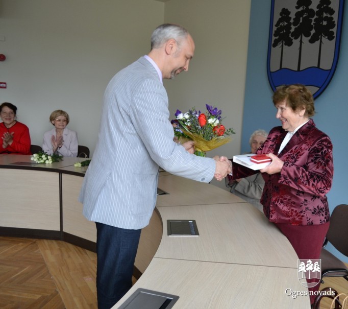 Priekšsēdētājs Artūrs Mangulis sveic Ogres Goda pilsones