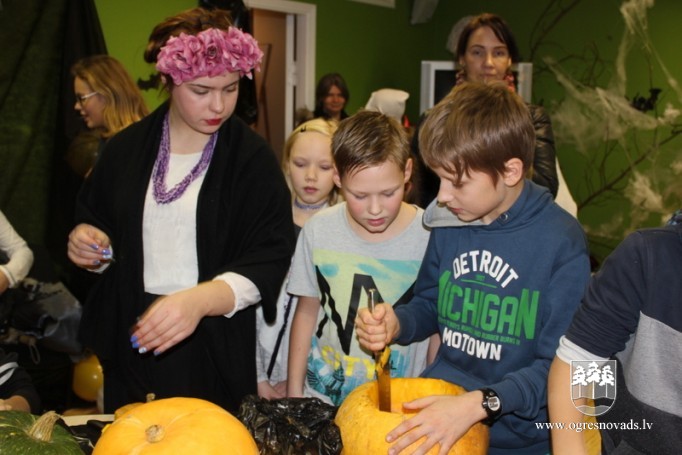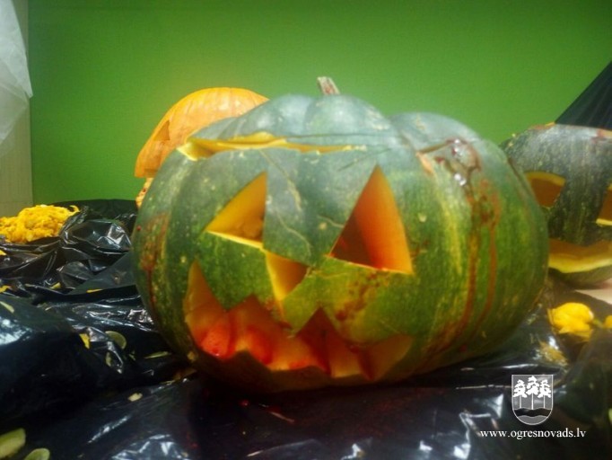 Šausmu vakarā Ogrē jaunieši grebj ķirbjus un skatās šausmu filmas
