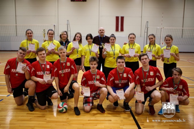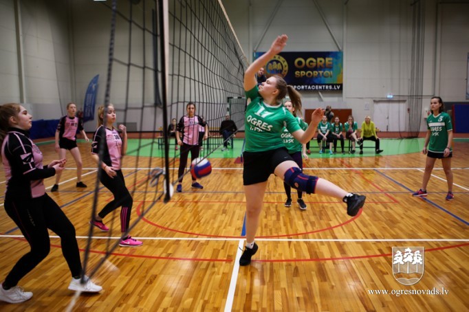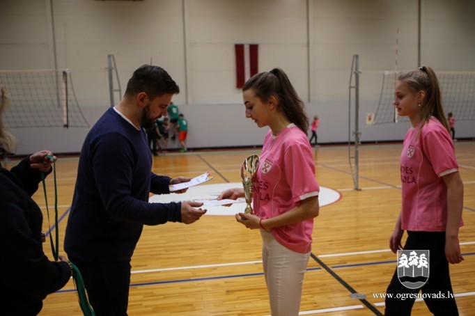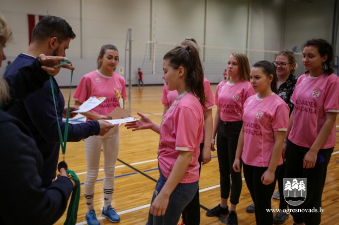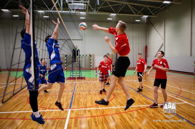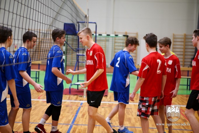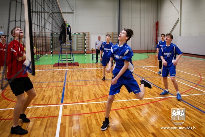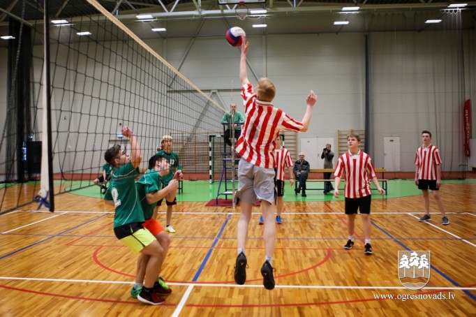 Skolu audzēkņi sacenšas volejbolā