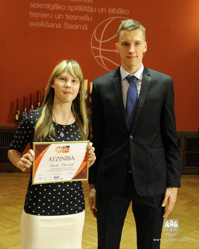 Treneri Pauliņu un sešus jaunos basketbolistus sveic Saeimā