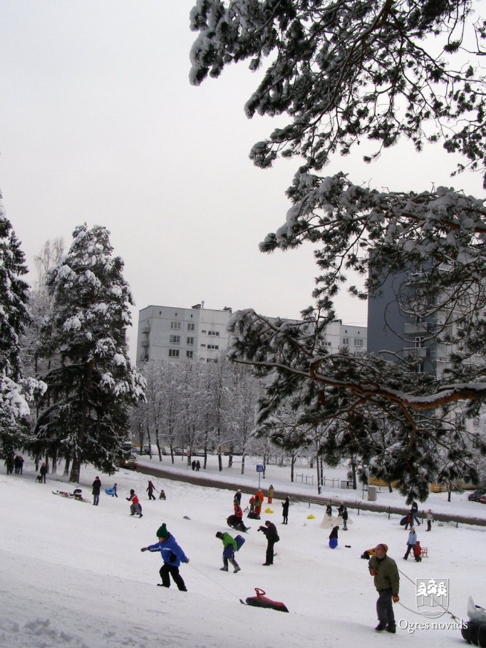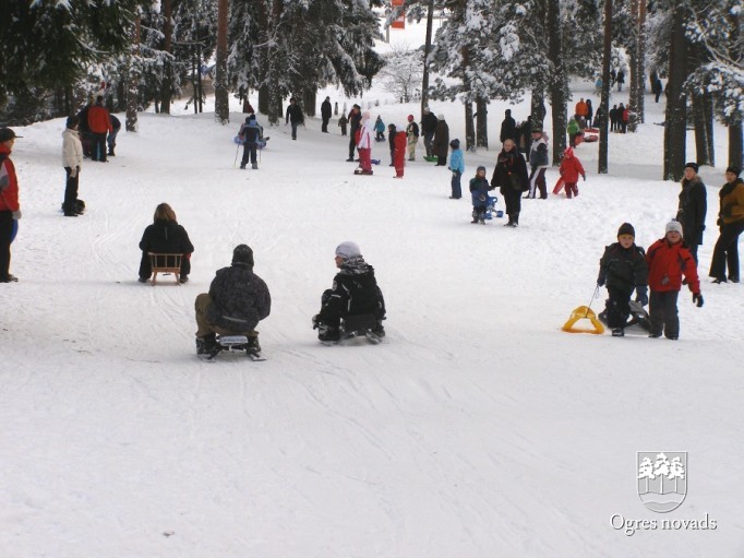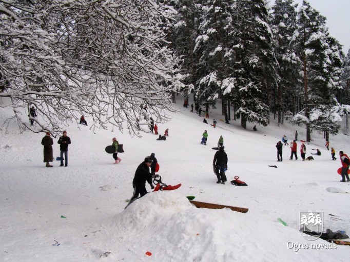 Ziemā , kad uzsnieg sniegs, Zilie kalni Ogrē kļūst par vietu jautrām un sportiskām aktivitātēm