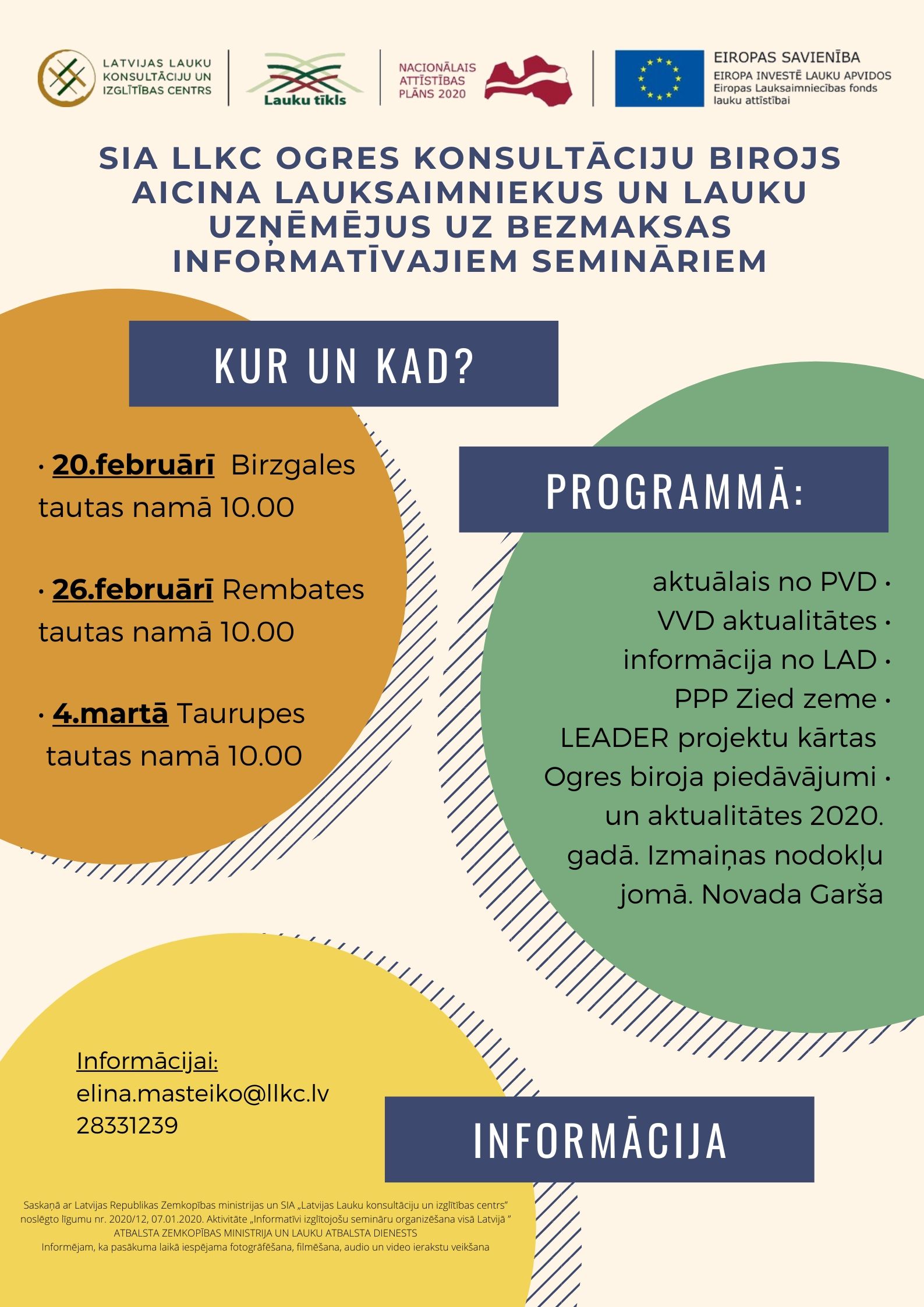 LLKC Ogres biroja uzņēmējdarbības un lauku attīstības konsultants - Elīna Masteiko elina.masteiko@llkc.lv 28331239