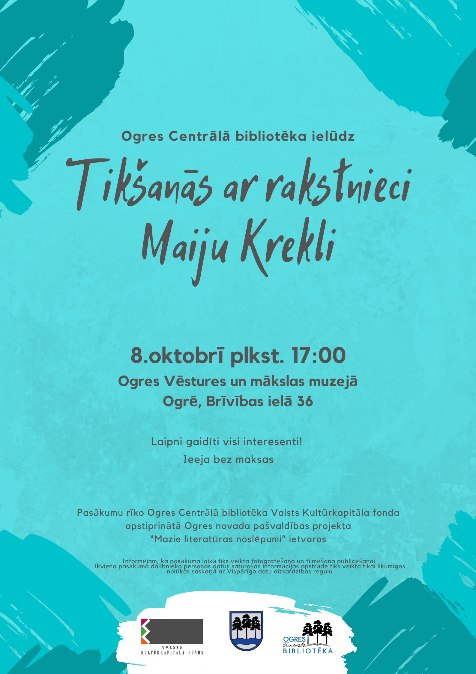 Pasākumu rīko Ogres Centrālā bibliotēka Valsts Kultūrkapitāla fonda apstiprināta Ogres novada pašvaldības projekta “Mazie literatūras noslēpumi” ietvaros.