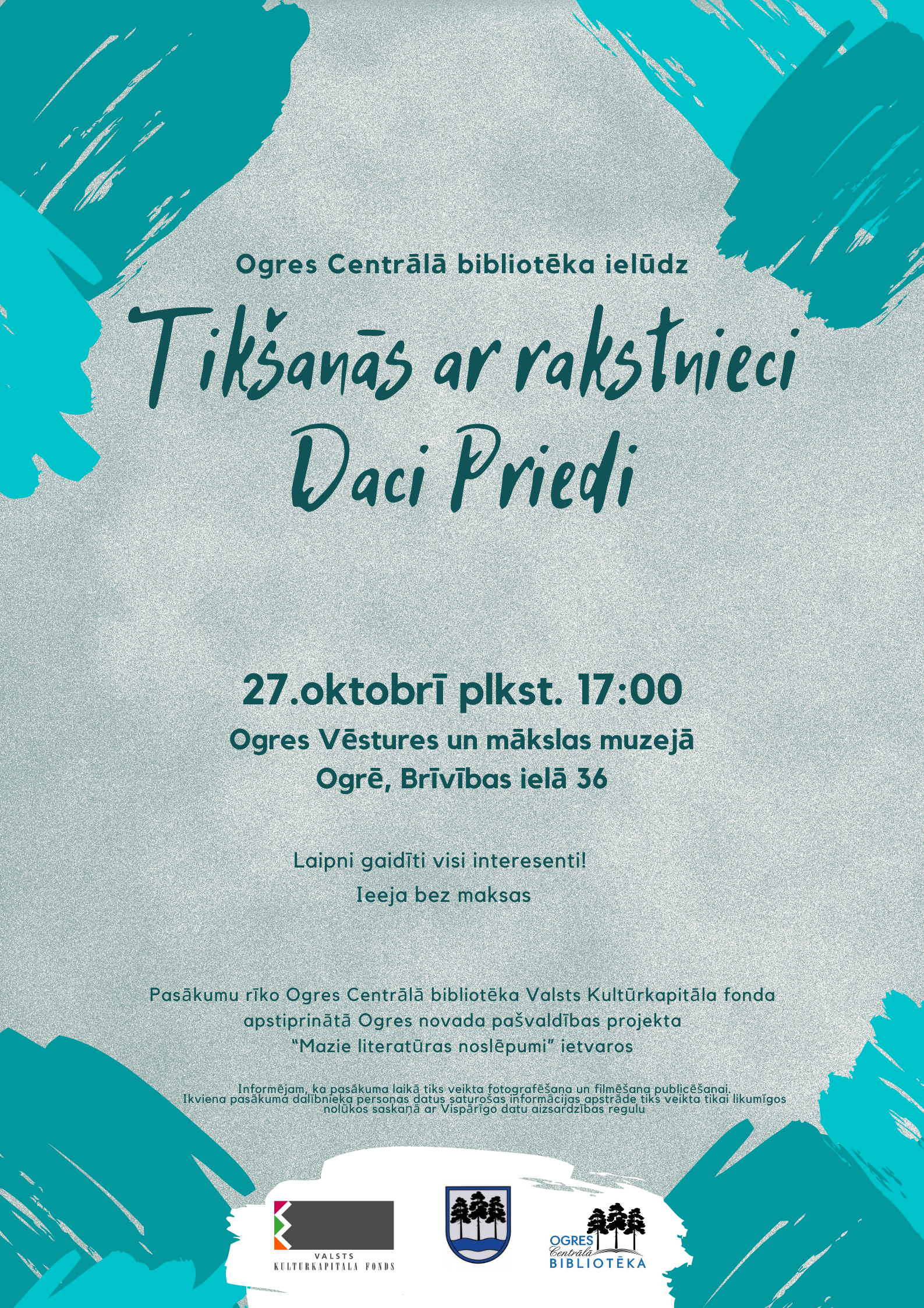Pasākumu rīko Ogres Centrālā bibliotēka Valsts Kultūrkapitāla fonda apstiprināta Ogres novada pašvaldības projekta “Mazie literatūras noslēpumi” ietvaros.