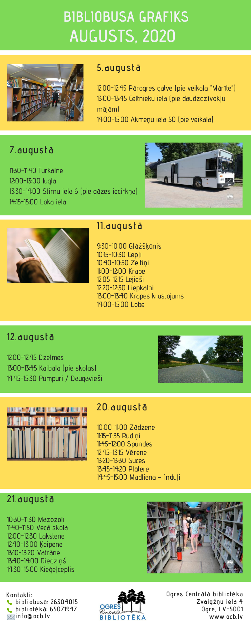 - tālr. bibliobusā – 26304015;