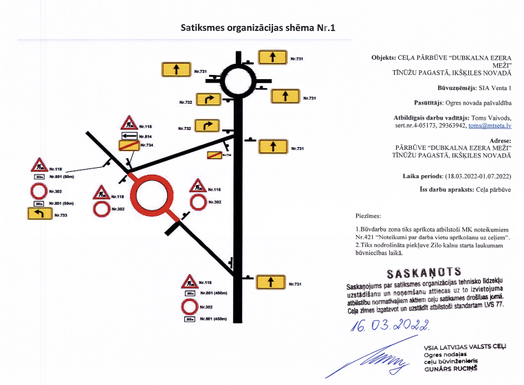 Šogad notiek Dubkalnu ceļa “Dubkalna ezera meži” Tīnūžu pagastā pārbūves darbi posmā no valsts reģionālā autoceļa P5 Ulbroka – Ogre līdz Smiltāju kapiem, kā arī jauna ceļa posma izbūve. Turpmāko darbu veikšanai esošais ceļa posms no 21. marta satiksmei tiek slēgts (pielikumā skatīt satiksmes organizācijas shēmu).