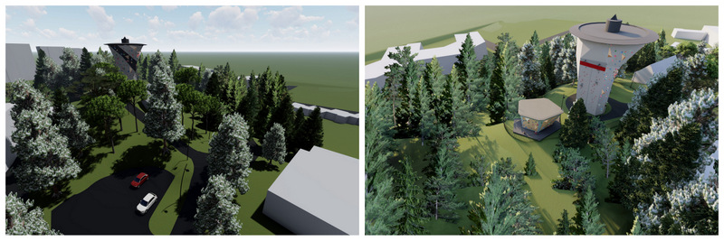 Atgādinām, ka projekts paredz uz ūdenstorņa izvietot standarta boulderinga moduļsienu MoonBoard un ātrumkāpšanas moduli Etalons.