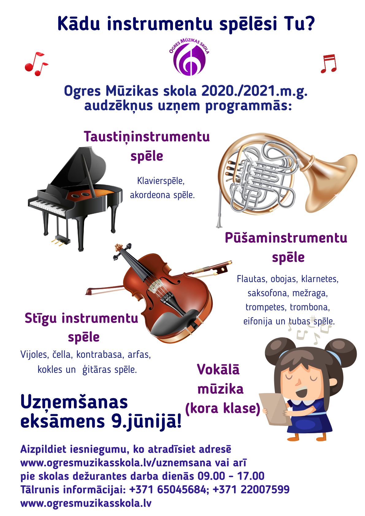 Vairāk informācijas mājaslapā: www.ogresmuzikasskola.lv/uznemsana