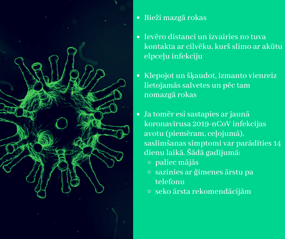 - Klepojot vai šķaudot, izmantot vienreizējās salvetes, pēc tam nomazgāt rokas.