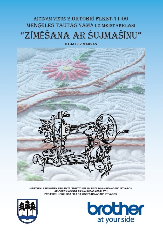 Projekta “Izglītojies un radi savam novadam” ietvaros tiks organizētas trīs “Zīmēšana ar šujmašīnu” meistarklases: