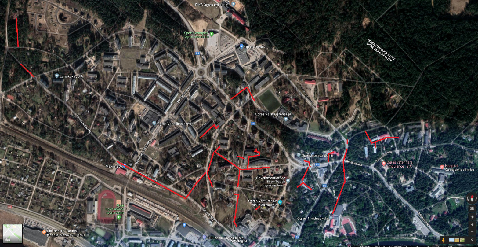 Pielikumā aptuvens plānoto nomaināmo siltumtīklu izvietojums - ekrānšāviņš no google.maps.