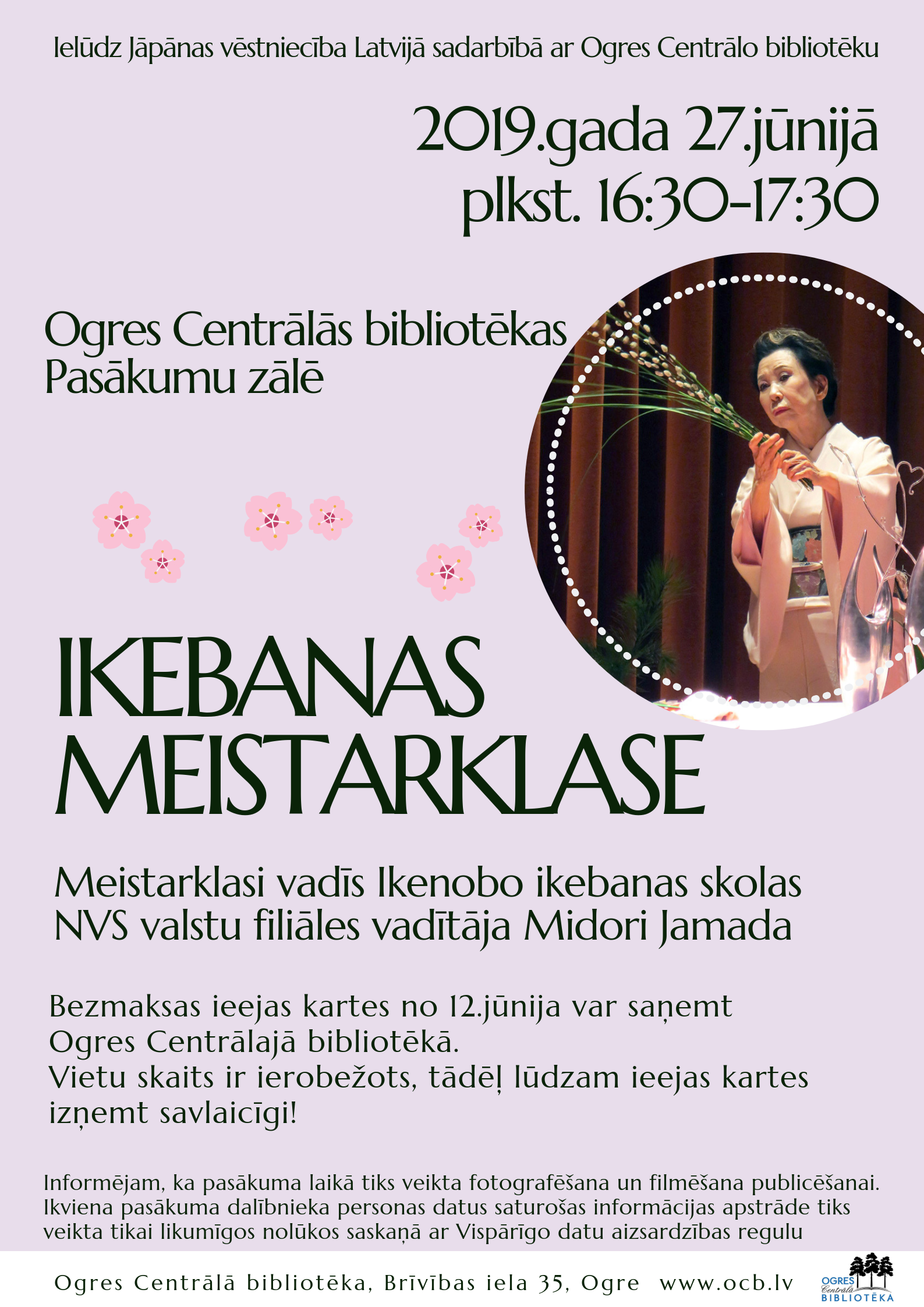 Bezmaksas ieejas kartes no 12.jūnija var saņemt Ogres Centrālajā bibliotēkā. Vietu skaits ir ierobežots, tāpēc lūdzam ieejas kartes izņemt savlaicīgi.