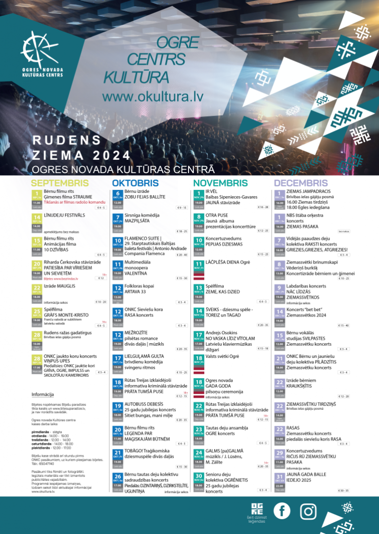Ogres novada Kultūras centra 2024. gada rudens/ziemas sezonas programma