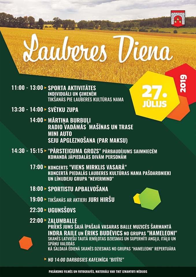 No plkst.11.00 līdz 13.00 notiks sporta aktivitātes ģimenēm un individuāli. Tikšanās pie Lauberes Kultūras nama.