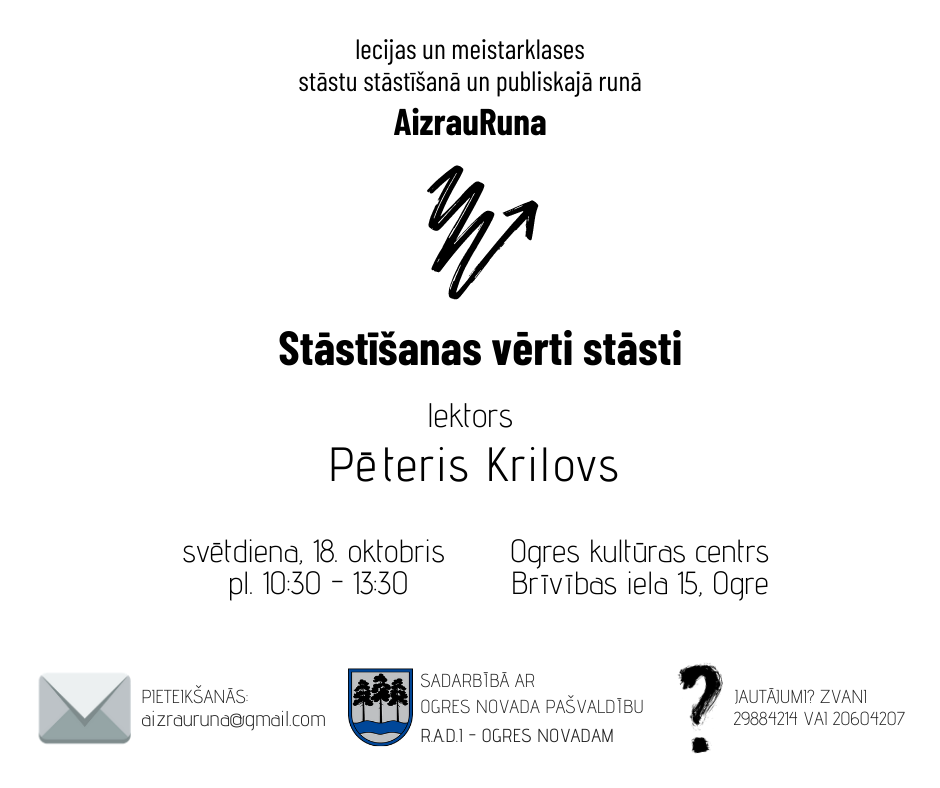 Piesakies nodarbībām, rakstot uz e-pastu aizrauruna@gmail.com, kā arī seko līdzi Facebook lapai AizrauRuna. Tiekamies!