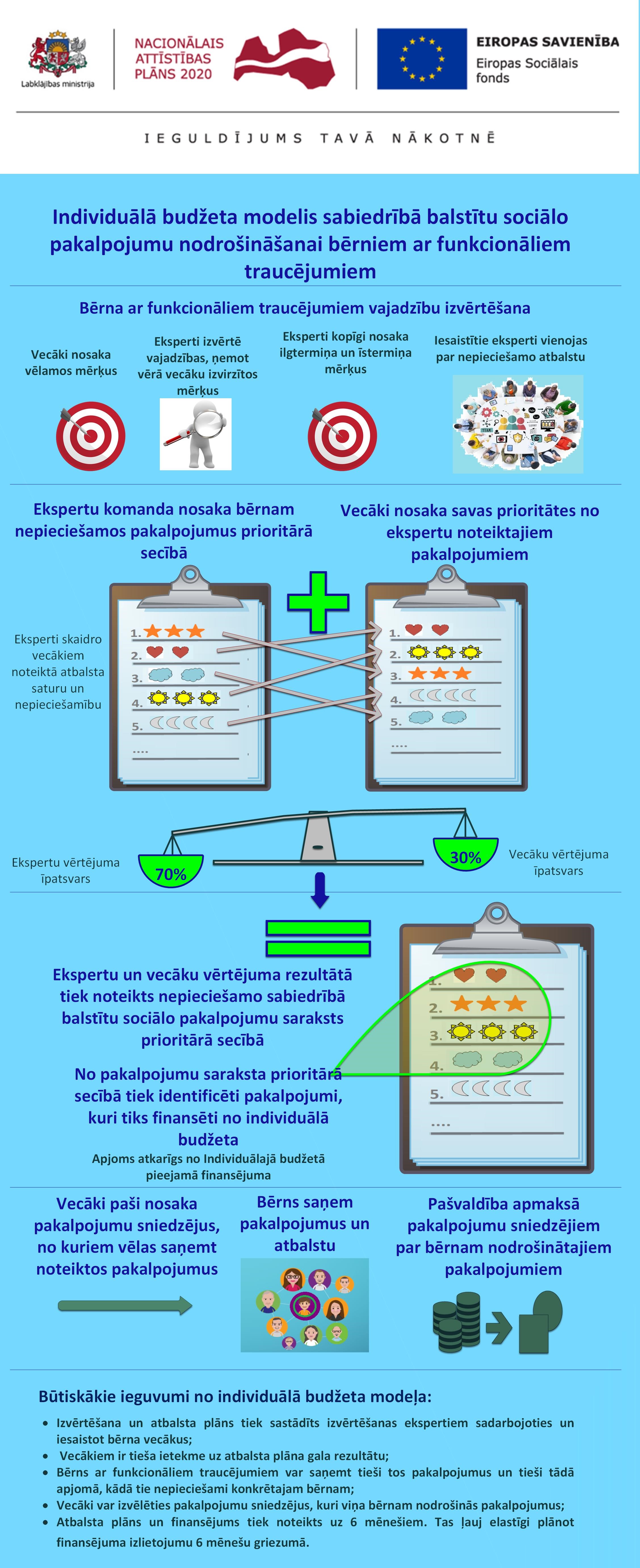 Modeļa izstrāde un izmēģinājumprojekts tiek īstenots Labklājības ministrijas projekta ietvaros, izmantojot Eiropas Sociālā fonda līdzfinansējumu. Kopumā projektā piedalās 100 bērni ar invaliditāti un viņu ģimenes no 10 Latvijas pašvaldībām.